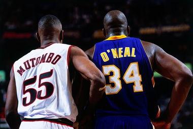 穆大叔的巅峰是掘金和老鹰时期,那时候的穆大叔,在90年代的四大中锋和连续7届篮板王罗德曼时期,穆大叔还是得到了两个篮板王,巅峰赛季场均14.2个篮板。除了篮板王,还有3个盖帽王的称号,巅峰赛季场均4.1个盖帽,几乎无敌,他唯一能够和大梦奥拉朱旺比拼盖帽的男人,奥拉朱旺占据着NBA历史的第一盖帽王(3830),第二名就是他穆托姆博(3289),所以说,穆大叔也是内线悍将。