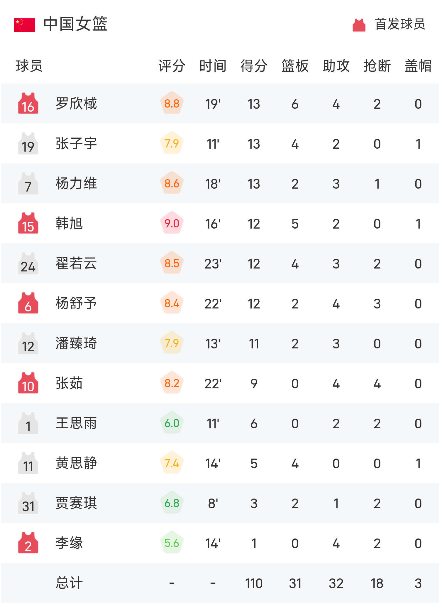 开云体育官网-女篮亚洲杯战报:罗欣棫&张子宇&杨力维各得13分,中国女篮110-59狂胜印尼女篮