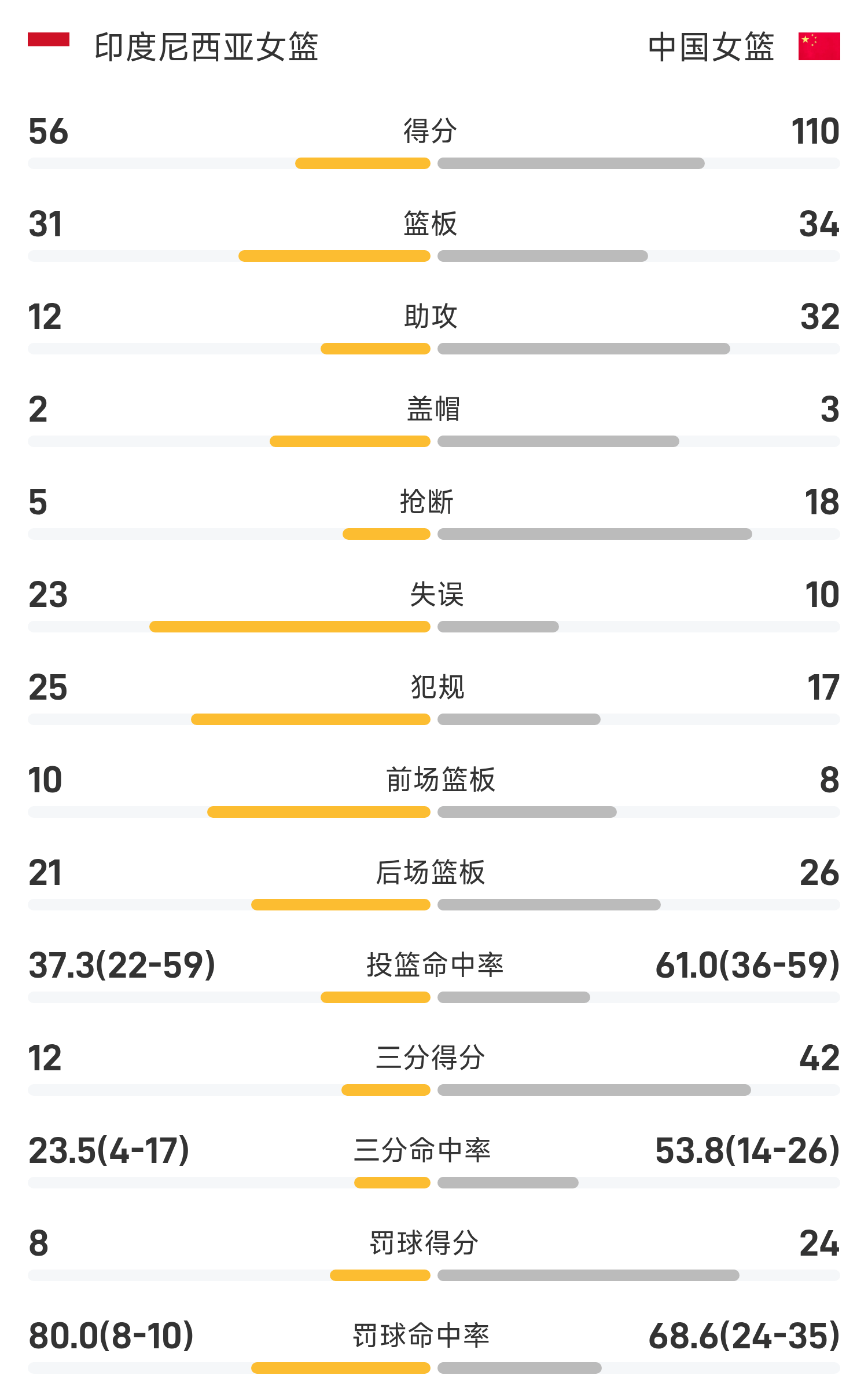 07月13日讯 女篮亚洲杯小组赛,中国女篮对阵印度尼西亚女篮。双方全场战罢,中国女篮110-59战胜印度尼西亚女篮。罗欣棫得到13分6板4助率队取胜,路易斯空砍全场最高的15分6板。